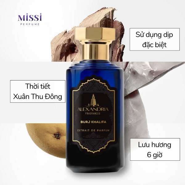 Có thể thấy, Alexandria Fragrances Burj Khalifa Extrait De Parfum là mùi hương được tạo nên từ rất nhiều thành phần. Sự kết hợp này mang đến cho bạn hương thơm phấn mỏng, cay ấm nồng nàn và đậm chất phương Đông. Em này sẽ phù hợp nhất với những bạn thích nước hoa tông mùi gỗ đậm kết hợp với hoa cỏ.