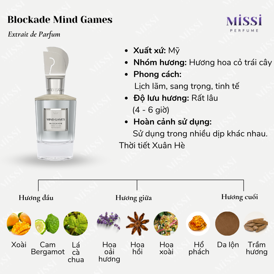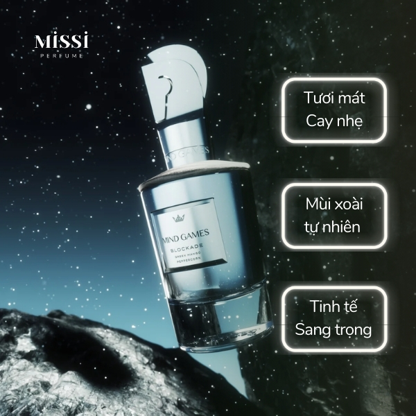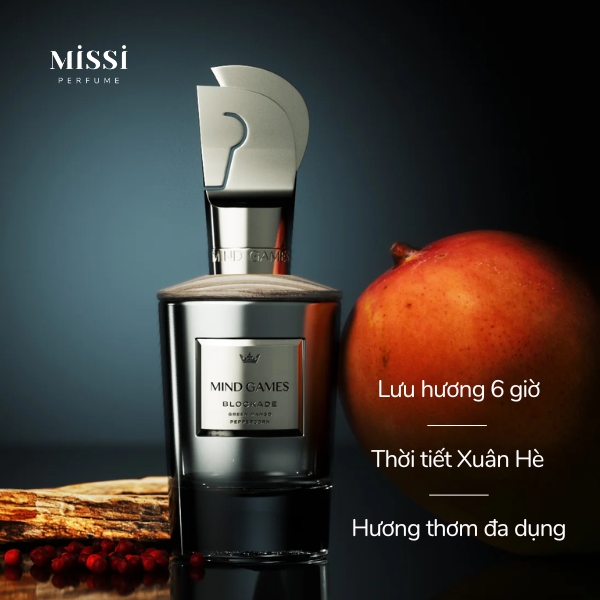 Khi nhắc đến nhà hương Mind Games thì không thể nào không kể đến Blockade Mind Games. Đây là dòng nước hoa nam được hãng ra mắt vào năm 2022 với tông mùi xoài xanh nổi bật.