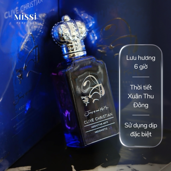 Clive Christian Jump Up And Kiss Me Hedonistic chính là gợi ý dành cho những buổi hẹn hò, sự kiện quan trọng vào buổi tối Xuân Thu Đông. Mùi hương của em này sẽ khiến bạn trở nên thu hút và được chú ý ngay từ khi bước vào căn phòng.