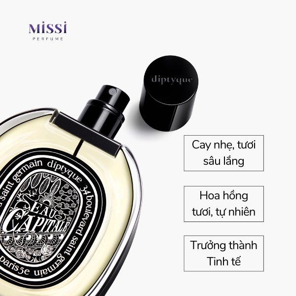Mỗi nốt hương hoa hồng đều mang đến trải nghiệm khác nhau cho người sử dụng. Với Diptyque Eau Capitale EDP, bạn sẽ tìm thấy một mùi hương hoa hồng mang vẻ đẹp cổ kính, trầm mặc của thành phố Paris.