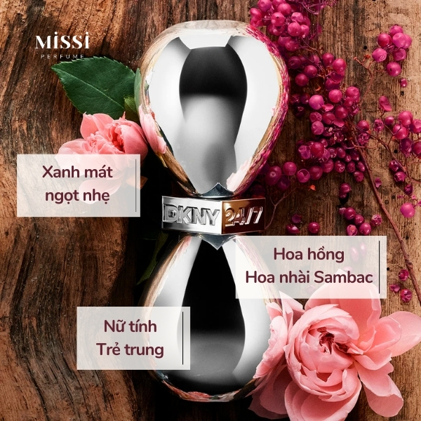 Với chủ điểm là hoa trắng và hoa hồng, DKNY 24/7 EDP mang đến tông mùi xanh mát, ngọt nhẹ dành cho những ngày Xuân Hè Thu. Đây cũng là mùi hương đa dụng, có thể sử dụng mỗi ngày trong nhiều dịp khác nhau.