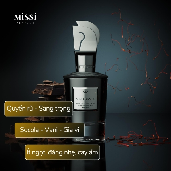 Nếu như bạn là tín đồ của những chai nước hoa unisex có tông mùi thực phẩm, đặc biệt là socola thì có thể trải nghiệm qua em Double Attack Mind Games. Đây cũng là một trong những chai nước hoa có tông mùi socola cao cấp, không bị ngọt gắt và dễ dàng chiều lòng số đông người dùng.