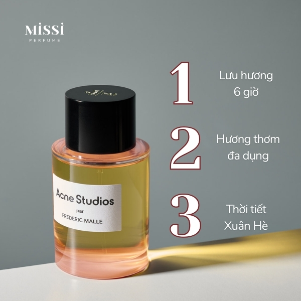Mùi hương của Frederic Malle Acne Studios toát lên phong thái của người có gu nước hoa tinh tế, thanh lịch và tối giản. Mùi hương dễ dàng kết hợp với nhiều kiểu trang phục khác nhau với gam màu nhẹ nhàng, trang nhã.