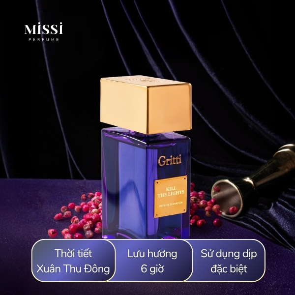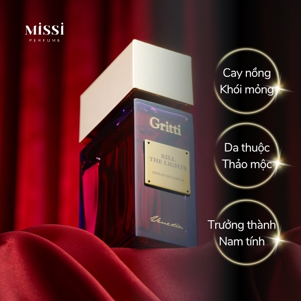 Ra mắt vào năm 2023, Gritti Kill The Lights nhanh chóng gây ấn tượng với các tín đồ yêu hương bởi sự kết hợp mượt mà của da thuộc và các nốt hương thảo mộc. Đây cũng là một trong những mùi hương cá tính nhất trong dải sản phẩm của nhà hương Gritti.