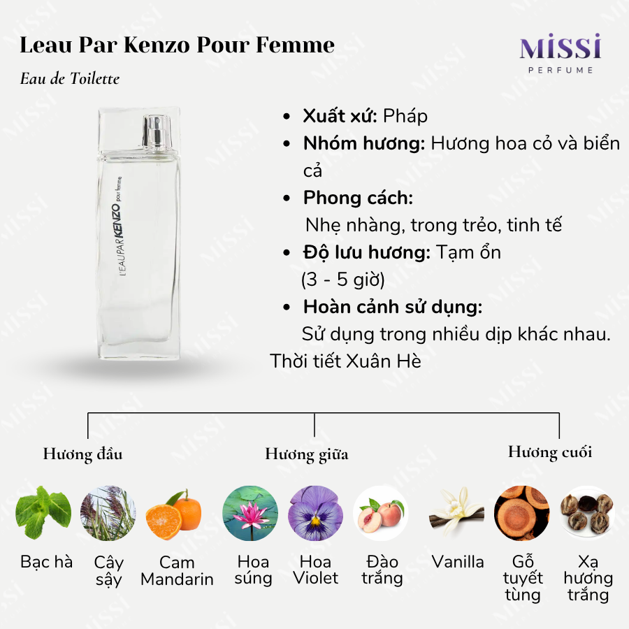 Đặc trưng mùi hương Leau Par Kenzo Pour Femme 100ml EDT