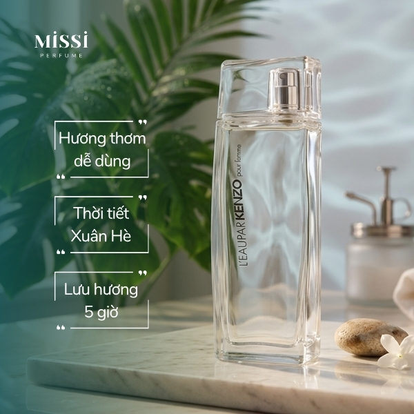 Leau Par Kenzo Pour Femme 100ml EDT sẽ là mùi hương lý tưởng để sử dụng trong thời tiết Xuân Hè. Với hương thơm dễ chịu, nàng có thể linh hoạt xịt mùi hương này mỗi ngày trong môi trường văn phòng lẫn các buổi hẹn nhẹ nhàng với những người thân thương.