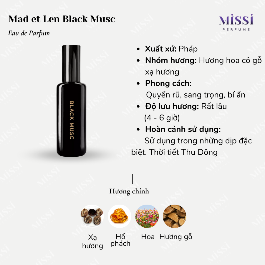 Đặc trưng mùi hương Mad et Len Black Musc