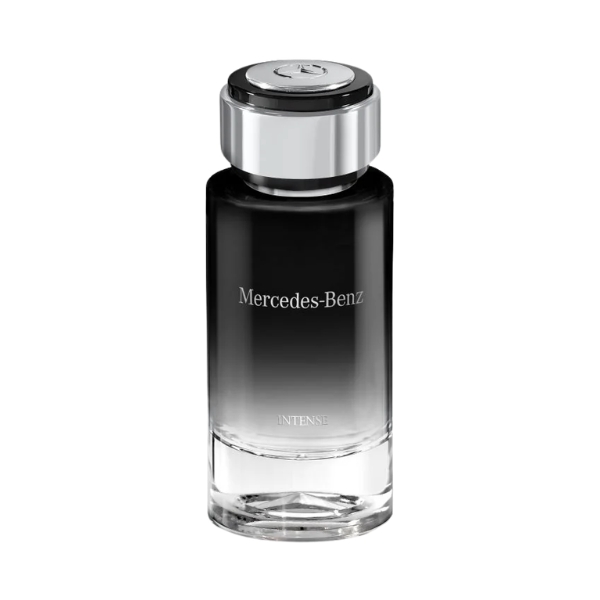 Tầng hương đầu của Mercedes-Benz Intense mở ra là cảm giác xanh, tươi mát và chua nhẹ đến từ lá hoa Violet, chanh vàng, cam Bergamot Calabria và quýt Ý. Sau khoảng 15 phút, hương thơm sẽ chuyển sang nét mùi cay nồng, khô và gai góc hơn bởi sự kết hợp của hoa Violet, tiêu Bourbon, nhục đậu khấu và Galbanum. Càng về sau, hương thơm lắng xuống trên lớp nền gỗ khô, sâu lắng đến từ cỏ hương bài Bourbon, gỗ tuyết tùng, hoắc hương và Cetalox.