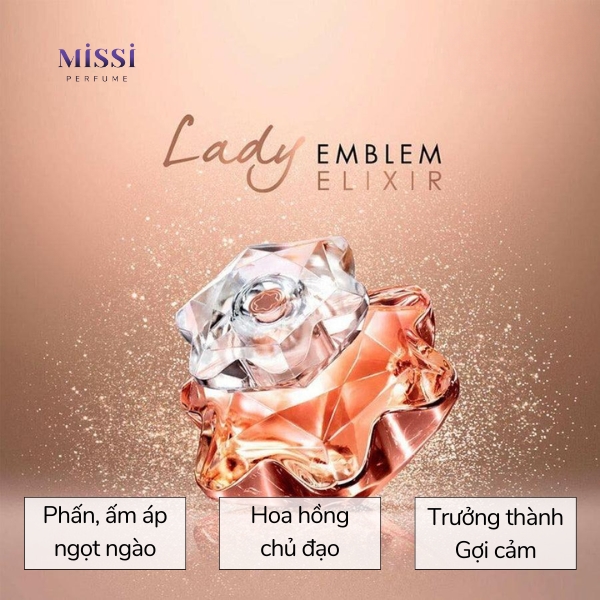 Bản Montblanc Lady Emblem Elixir mang đến hình ảnh một cô nàng trưởng thành, gợi cảm, lôi cuốn hơn so với bản gốc. Hương thơm phù hợp nhất với những bạn nữ đã đi làm, có chiều sâu trong cuộc sống cũng như gu ăn mặc thời thượng từ khoảng 25 tuổi trở lên.