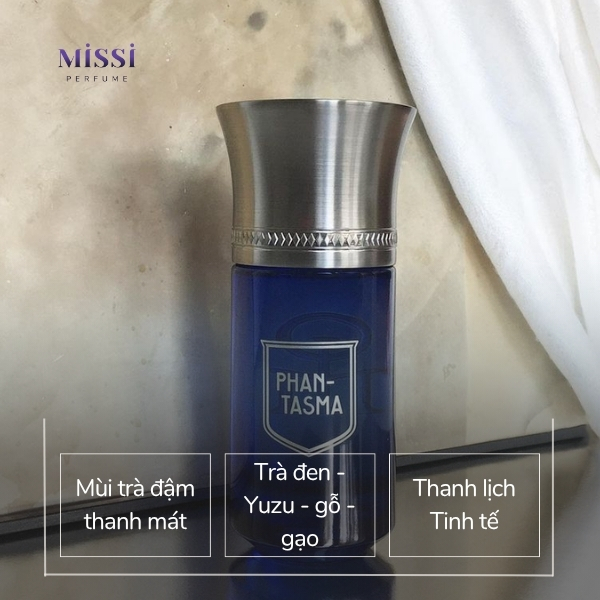 Nếu bạn là tín đồ của nước hoa mùi trà thanh mát thì Les Liquides Imaginaires Phantasma hoàn toàn là gợi ý bạn không thể bỏ lỡ. Em này khai thác nốt mùi của trà đen, đi cùng với gạo và quả Yuzu, tạo nên nét mùi trà đậm, thanh mát. Mùi hương sẽ khiến bạn liên tưởng đến những ly trà gạo thơm mát với vị trà thoảng nhẹ nhàng và cực kì thư giãn. Đây cũng là mùi hương có độ unisex cao, dễ dùng trong nhiều dịp với độ lưu hương lý tưởng đến 6 giờ.