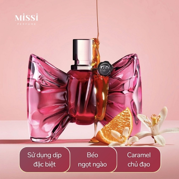 Viktor Rolf Bonbon gây ấn tượng với phái nữ ngay từ lần chạm mắt đầu tiên bởi thiết kế vỏ chai hình chiếc nơ độc đáo. Tương đồng với thiết kế, mùi hương của Bonbon cũng đi theo xu hướng vui tươi và tràn đầy năng lượng. Thành phần chủ đạo trong em này chính là nốt mùi của Caramel kết hợp với cam chanh và gỗ đàn hương, tạo nên nốt béo, ngọt ngào và nồng nàn. Mùi hương sẽ phát huy tốt nhất vào buổi tối khi nàng tham dự những buổi tiệc tùng hay đi hẹn hò thân mật,…