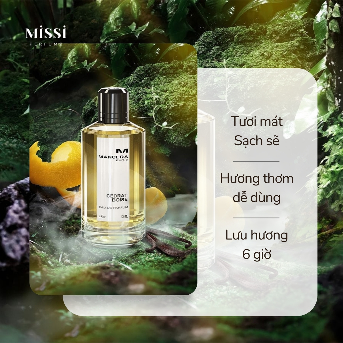 Mancera Cedrat Boise được xem là biểu tượng tiêu biểu cho những chai nước hoa niche có tông mùi cam chanh ấn tượng. Đây là mùi hương mà bạn càng ngửi sẽ càng cảm thấy thích bởi tông mùi cam chanh, trái cây theo hướng tươi mát, sạch sẽ. Mùi hương mang đến hình ảnh nam tính, mạnh mẽ cho đấng mày râu. Mặc dù sở hữu tông mùi cam chanh mát mẻ nhưng Mancera Cedrat Boise lại có độ bám tỏa rất tốt, hương thơm lưu trên da đến 6 giờ hoặc có thể lâu hơn nếu chàng hợp cơ địa.